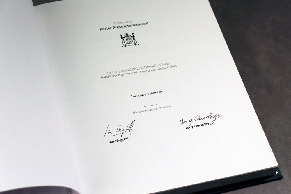 A stunning special Limited Edition which is bound in dark blue leather with gilt edges, and cased in a grey cloth slipcase. There is an embossed reproduction of the chassis number, '912' on the front of the book. This leather-bound edition is limited to just 100 copies and is signed by the author.